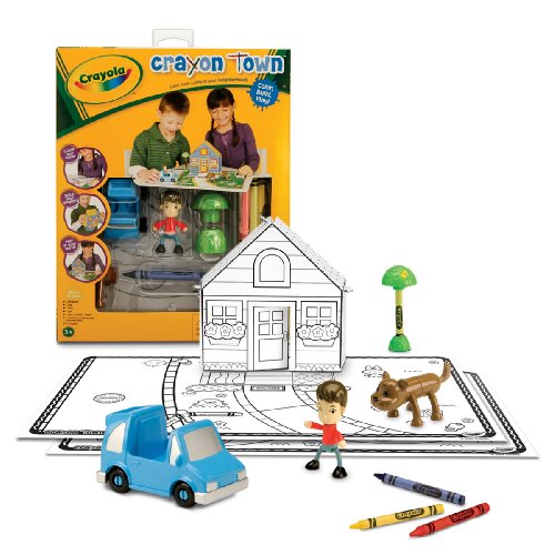 Crayola Craxon Town - Neighborhood combines the fun of art - drawing and coloring, with construction and imaginative play. Color the playmat, props and building. Put together and build the setting. After the coloring and building use your crayons to make wacky animals, vehicles and structures. Once the House is built, kids use the accompanying figures and vehicles to engage in their own imaginative scenarios. As the coloring continues the crayon props change size. A clever combination of three play pattens kids love - drawing, construction and role play.