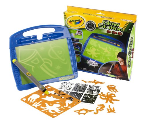 Now you can create with light anywhere! Crayola Glow Station gives you the power to create amazing illustrations with light! Use the light wand on the glow canvas to make luminous free hand drawings or use the included stencils for shimmering shapes and scenes. Your drawings will magically disappear over time so can create new light-art again and again! This travel version is great for vacations or any trip because it's super portable! This package contains 1 glow canvas featuring on-the-go handle and storage (10" x 11-1/2" x 1/2"), 1 light wand, 1 stencil sheet, six stencil shapes, 1 texture sheet of lifelike designs, and instructions. Class 1 LED product. Takes 3 AAA batteries-not included. Recommended for ages 6 and up. WARNING: CHOKING HAZARD- Small Parts. Not for children under 3 years.