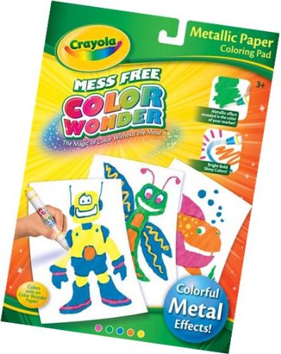 Crayola Color Wonder Metallic Paper Coloring Pad Set allows kids to create colorful, magical metal effects. The ink in these five vibrant markers only appears on the special metallic paper, so there's no mess -- and no time-consuming cleanup required. Create metallic shine with steely blues, radiant reds and shimmery greens. and the colors change as you move the paper. What's more, magical metal textures associated with each color add dimension and detail.