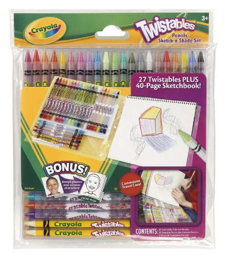 Draw. Sketch. Color. Let your imagination take control with the Crayola® Twistables® Pencils Sketch 'n Shade Set! Its 27 brightly colored Twistables® pencils and big 40-page sketchbook let you create vibrant images - without ever having to stop to sharpen points or peel back papers. Set comes in a handy go-anywhere case for easy transport and secure storage. Recommended for ages 3 and up.